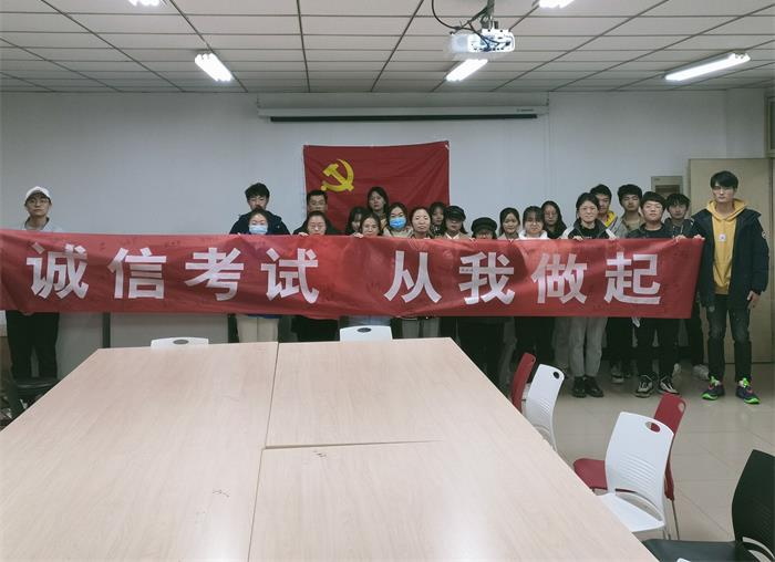 诚信是个人立足之本,对于莘莘学子来说,在即将到来的期末考试中显得尤为重要。学生第二党支部以“一个党员就是一面旗帜”为主题,号召支部每位学生党员都应力所能及地对身边的同学进行“诚信考试”的教育和引导,以实际行动为诚信校园的建设做出一份贡献。辅导员老师带领全体活动成员宣誓:“'诚实做人,诚信考试,努力营造公平、公正的考试环境,从我做起,从小事做起,为构建诚信社会贡献自己的一份力量!”,之后,支部的党员和21级新生代表都庄重地在诚信考试承诺书下写下自己的名字,作出诚信考试的承诺。