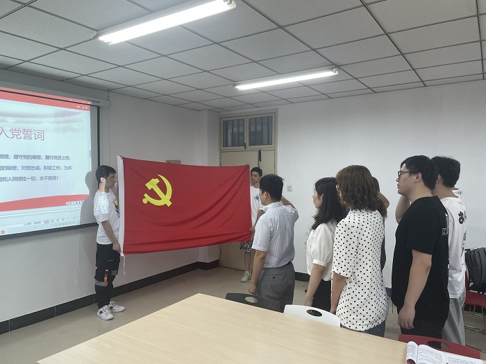炎炎夏日,抵挡不住毕业生和母校依依惜别的亲情,色漫天堂 2021届的研究生二十余人早早来到图书馆门口,亲密地与学院领导及导师进行合影留念,有心的小吴同学还精心准备了一束鲜花,代表同学们献给了导师,导师们也纷纷接受邀请与同学们分别合影,表达着对同学们前程的殷切祝福。在合影活动之后,研究生毕业班党员和今年新发展的预备党员来到了学院六楼党员活动室,在院党总支副书记高荣同志的带领下,新发展的预备党员面向鲜艳的党旗,举起右手,庄严宣誓,“我志愿加入中国共产党……”,在庄严的气氛中,全体党员佩戴党员徽章,神情肃穆,脸上流露出坚毅的神情,简朴而隆重的仪式词增强了党员们的责任感和使命感,宣誓结束后,大家纷纷表示,党的百年华诞来临之际要学习革命先驱们舍身忘我,无私奉献的精神,努力学习、工作,以更加优异的成绩来迎接中华民族的复兴。