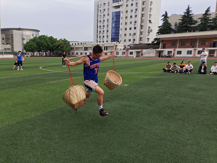 在烽火岁月中红军队伍根植于广大的人民群众之中,深得人民的拥护与爱戴,老话说的好:兵马未动粮草先行。太行山上,山陕边区,都留下了广大人民群众积极支边的场景,我们在红色团建中重温这一段经典的岁月。在扁担、竹筐中装上物资,同学们肩挑扁担,挑起的是历史与责任,运送的是未来与担当,同学们快步前行,争分夺秒,在激烈的角逐中,19级50与52小班以相同的分数并列第一。