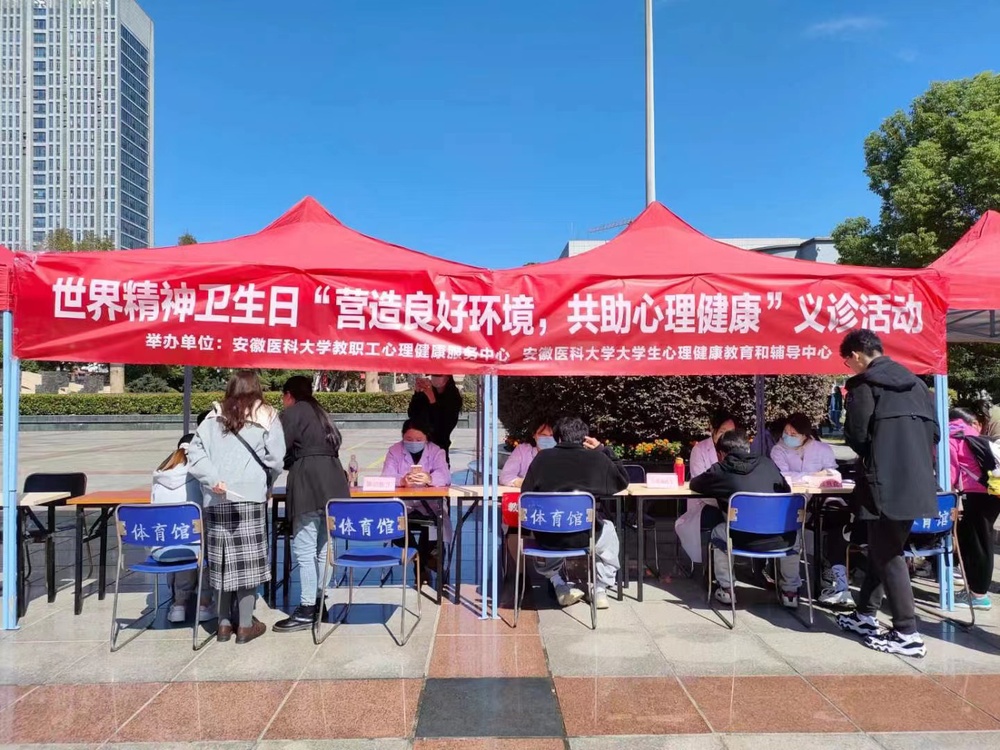 10月10日,教职工心理健康中心联合大学生心理健康教育和辅导中心,在校本部文化广场开展“营造良好环境,共助心理健康”义诊活动。省精神卫生中心副主任医师陈洁、主治医师靳红受邀来校为师生们提供心理义诊服务。